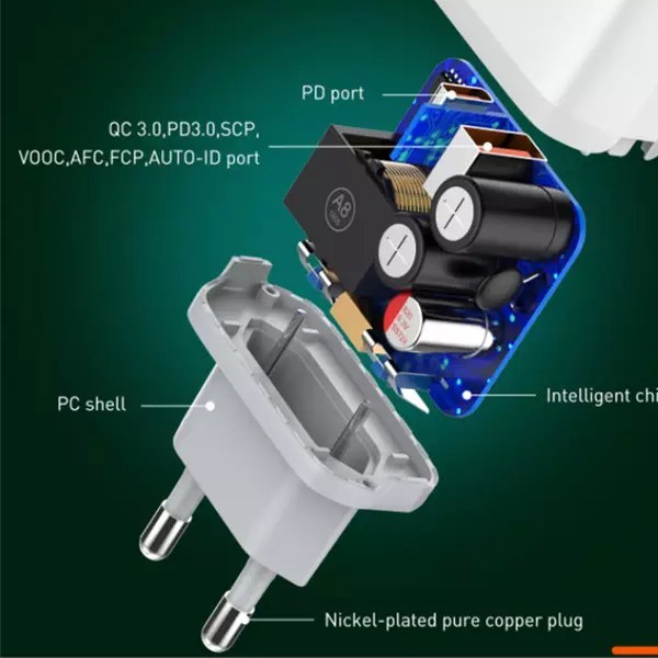 امروزه با توجه به پشتیبانی اکثر تلفن های همراه از قابلیت شارژ سریع استفاده از شارژهایی که این نوع شارژ را پشتیبانی می کند. شارژر دیواری LDNIO A2421C طراحی جمع و جوری دارد و از ماده PC نسوز با کیفیت بالا ساخته شده که در برابر فشار و شکستگی مقاوم است. این شارژ مسافرتی پروتکل های شارژ سریع را پشتیبانی می کند.این شارژر دارای یک پورت USB-A با قابلیت شارژ سریع QC 3.0 و یک پورت USB-C با قابلیت شارژ سریع PD می باشد. همچنین از پروتکل های مختلف شارژ مثل SCP، FCP و PE پشتیبانی میکند. توان شارژ آن برای خروجی تایپ C حداکثر 18w به مشخصات 4.5v=5A/9V=2A/12V=1.5A میباشد. توان شارژ خروجی USB-A حداکثر22.5W به مشخصات 4.5V=5A/5V=4.5A/9V=2A/12=1.5A میباشد. ولتاژ ورودی برای شارژر LDNIO A2421C PD QC 3.0 بین 100 تا 240 ولت است که برای استفاده در کشورهای مختلف مناسب است. شارژر LDNIO A2421C Fast Charge محافظت 9 لایه ای ارائه می دهد تا با خیال آسوده از آن استفاده کنید. در برابر توان، دما، ولتاژ،جریان و شارژ بیش از اندازه از گوشی شما محافظت می کند. همچنین جلوی اتصال کوتاه را می گیرد و جرقه نمی زند. علاوه بر این ها جنس آن از PC نسوز می باشد که تا 850 درجه سانتی گراد مقاومت دارد.داخل پک محصول یک کابل micro USB به طول یک متر قرار دارد.