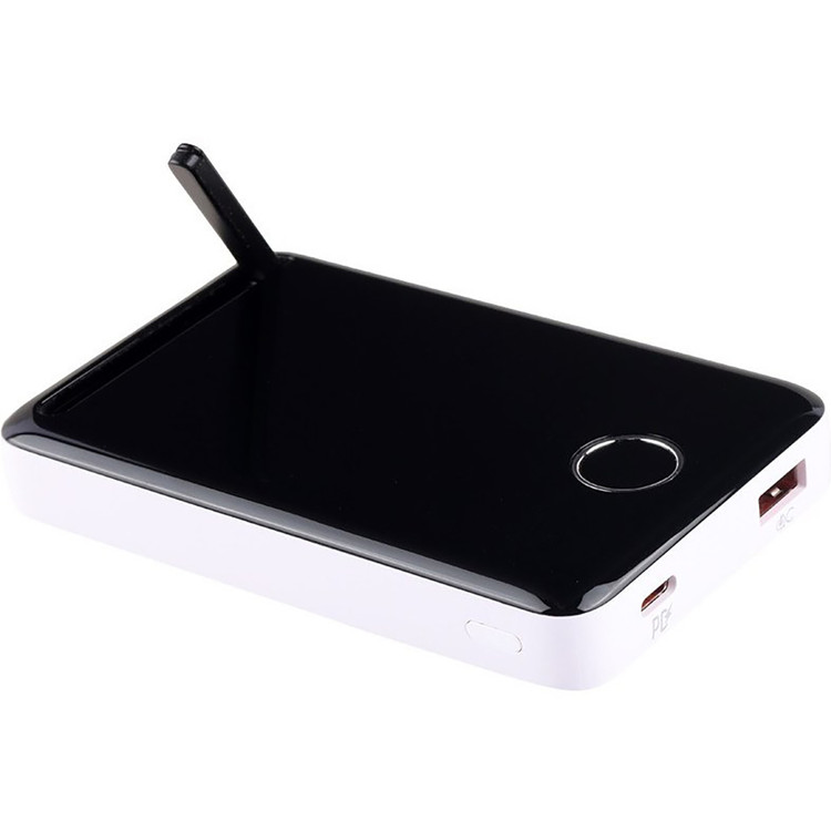 همچنین در پشت پاور بانک یک وایرلس آهنربایی تعبیه شده است تا بتواند انواع موبایل ها و ساعت های هوشمند و … را بصورت بیسیم شارژ نماید. در لبه جلویی نیز یک پایه قرار گرفته است تا در زمان استفاده از شارژر وایرلس بتوان ، از موبایل نیز استفاده نمود.