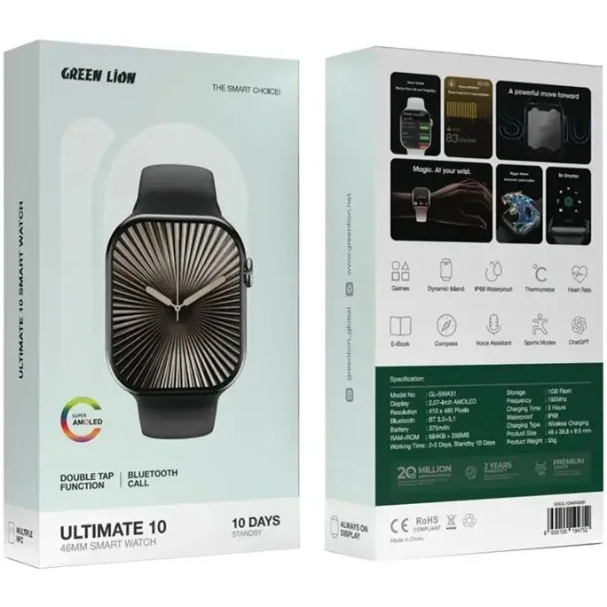 صفحه نمایش ساعت هوشمند Green Lion Ultimate 10 را می توان یکی ازصفحات نمایش قابل قبول در بین ساعت ها دانست. این ساعت دارای یک صفحه نمایش ۱.۸۵ اینچی از نوع Super Amoled با رزولوشن ۴۵۰*۳۹۰ پیکسلی بوده که کیفیت بالایی را در اختیار شما قرار می دهد.