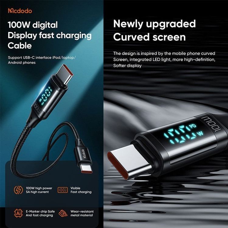 یکی از ویژگیهای برجسته کابل CA-110، نمایشگر دیجیتال تعبیهشده در آن است که بهصورت لحظهای توان شارژ (وات) را نمایش میدهد. این قابلیت به کاربران امکان میدهد تا وضعیت شارژ دستگاه خود را در هر لحظه مشاهده کرده و از سلامت فرآیند شارژ اطمینان حاصل کنند.