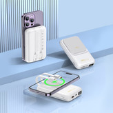 یکی از ویژگی های خاص این پاوربانک امکان نصب بر روی مگ سیف و شارژ بی سیم آیفون است، شما اگر ایفون ۱۲ تا ۱۵ دارید میتوانید با این پاوربانک به صورت بیسیم و نصب مغناطیسی آن بر پشت قاب موبایل آن را شارژ کنید.