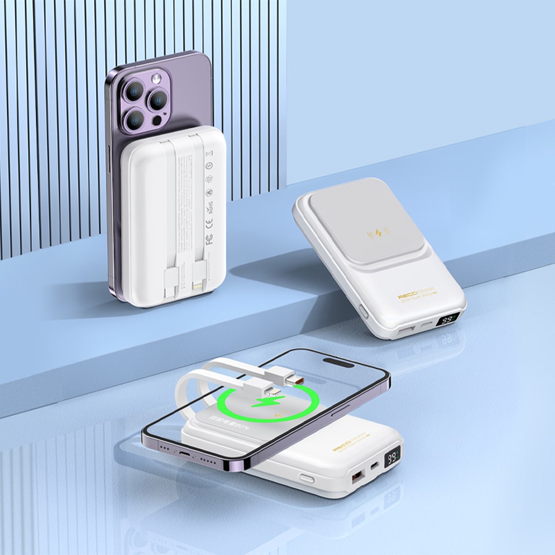اگر به دنبال یک پاوربانک همه کاره و با کیفیت هستید پاوربانک رسی مدل RECCI RPB-W10 با ظرفیت ۱۰۰۰۰ میلی آمپر میتواند یک گزینه خوب برای خرید باشد زیرا که هم به امکان شارژ وایرلس(بی سیم) و هم ۲ کابل متصل به خود پاور بانک میتوانید دستگاه خود را شارژ کنید به طوری که این پاوربانک شما را از حمل هرگونه کابل اضافی بی نیاز میکند.